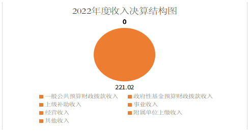 2022年本年收入合计221.02万元,其中:一般公共预算财政拨款收入221.02万元,占100%;政府性基金预算财政拨款收入0万元,占0%;上级补助收入0万元,占0%;事业收入0万元,占0%;经营收入0万元,占0%;附属单位上缴收入0万元,占0%;其他收入0万元,占0%。